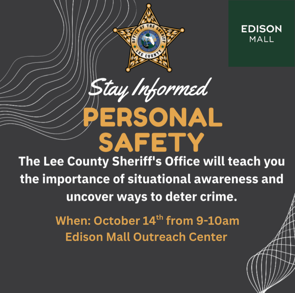 The Lee County Sheriff’s Office will teach you the importance of situational awareness and uncover ways to deter crime. Located in the Edison Mall Outreach Center.